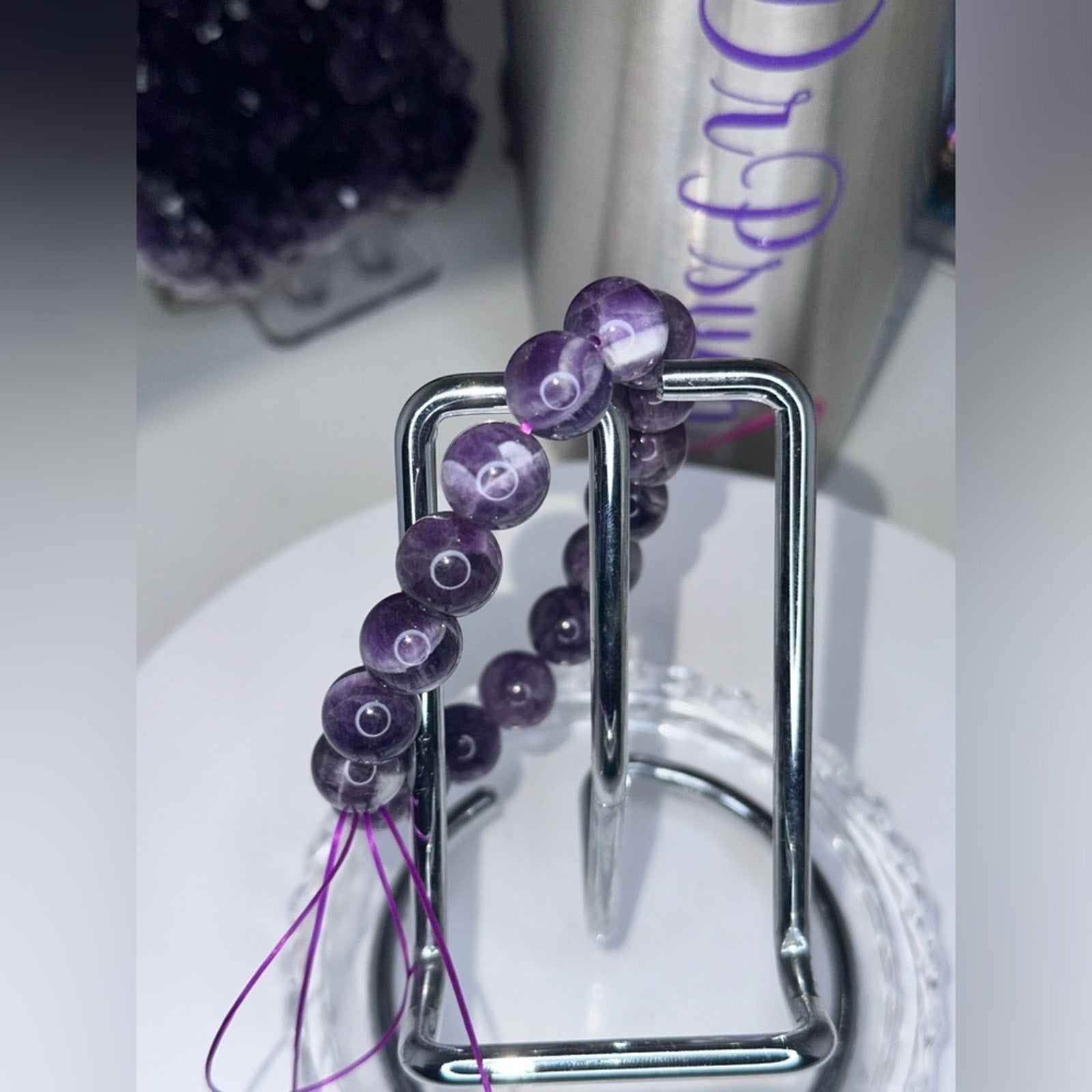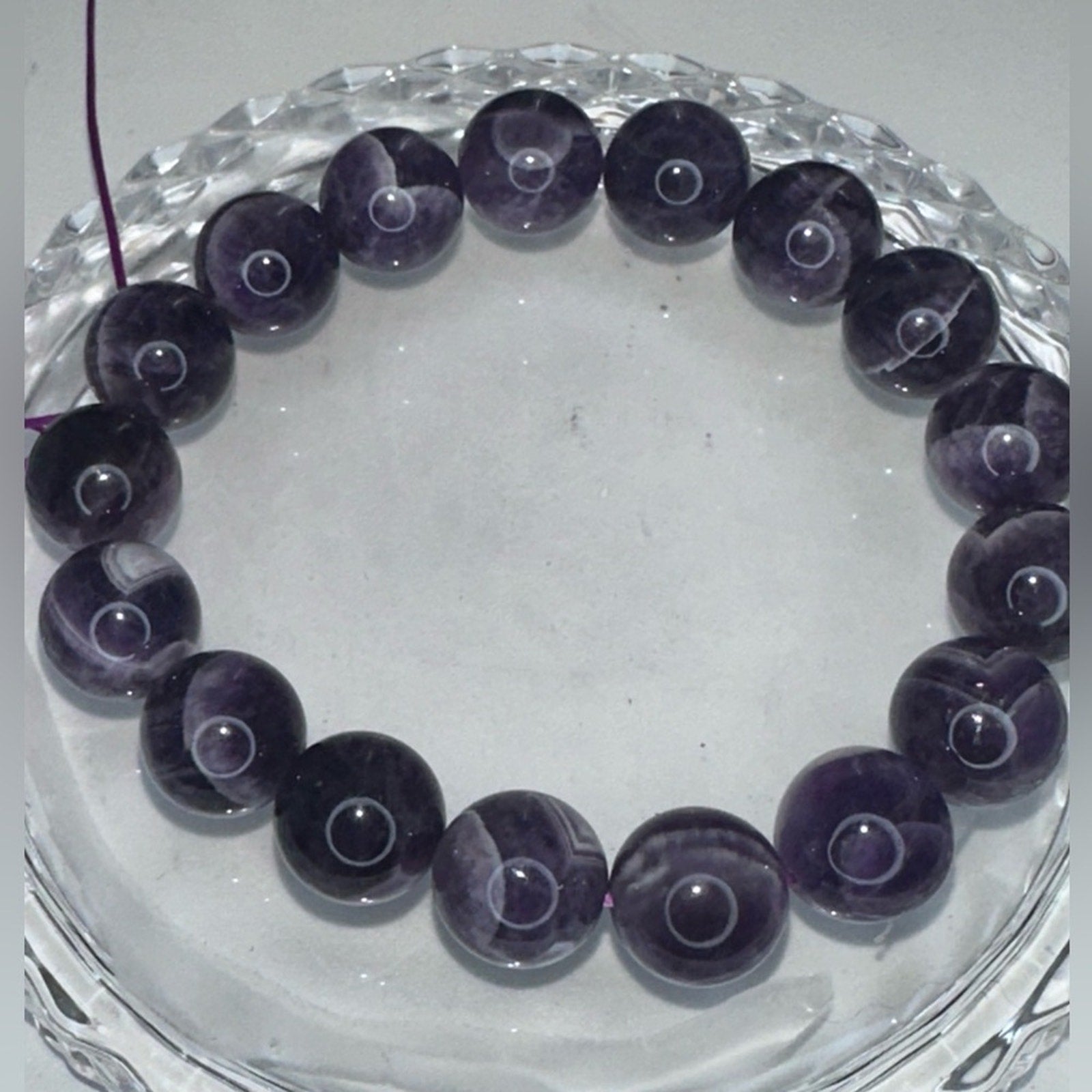 Beautiful dreamy Chevron amethyst bracelet with 11-12MM beads. Extra elastic supplied if you need to adjust,otherwise, just cut the tied loop down and itโs ready to wear. ๐น๐น