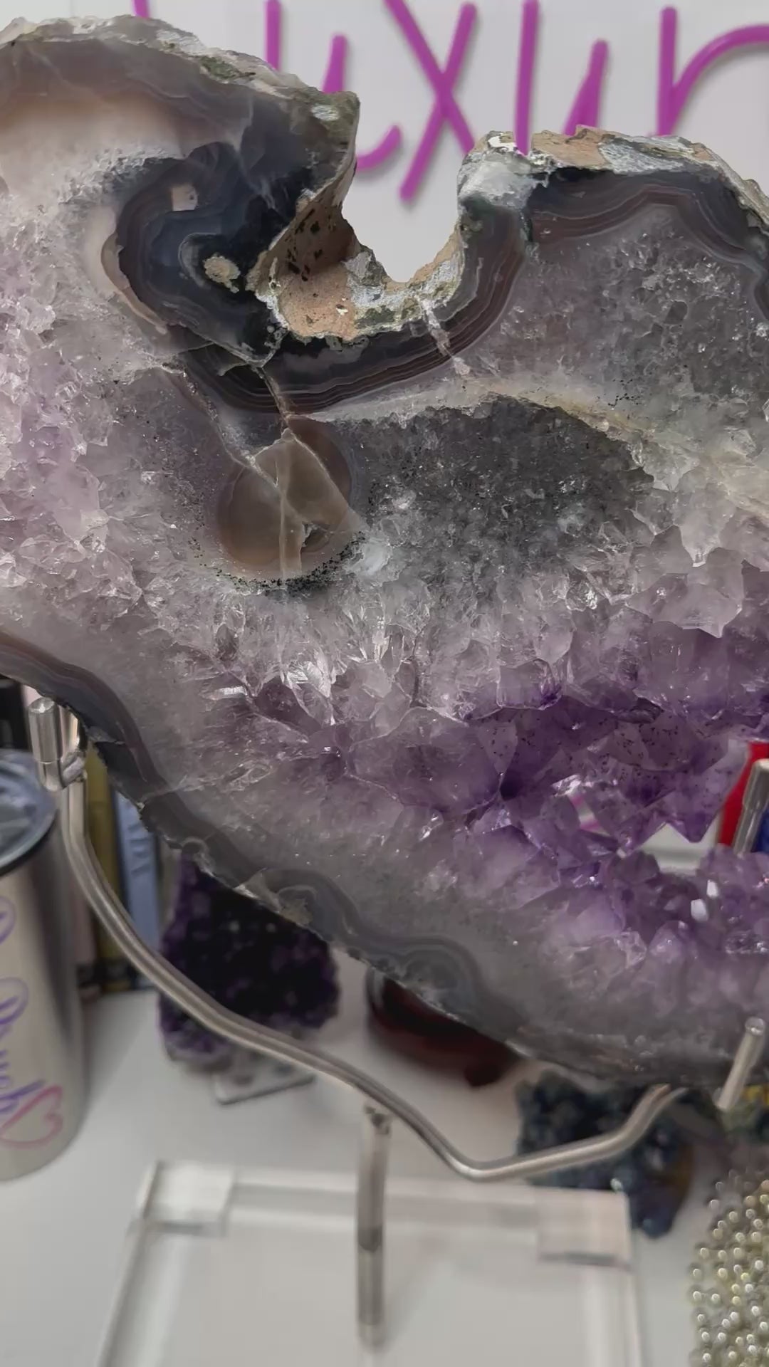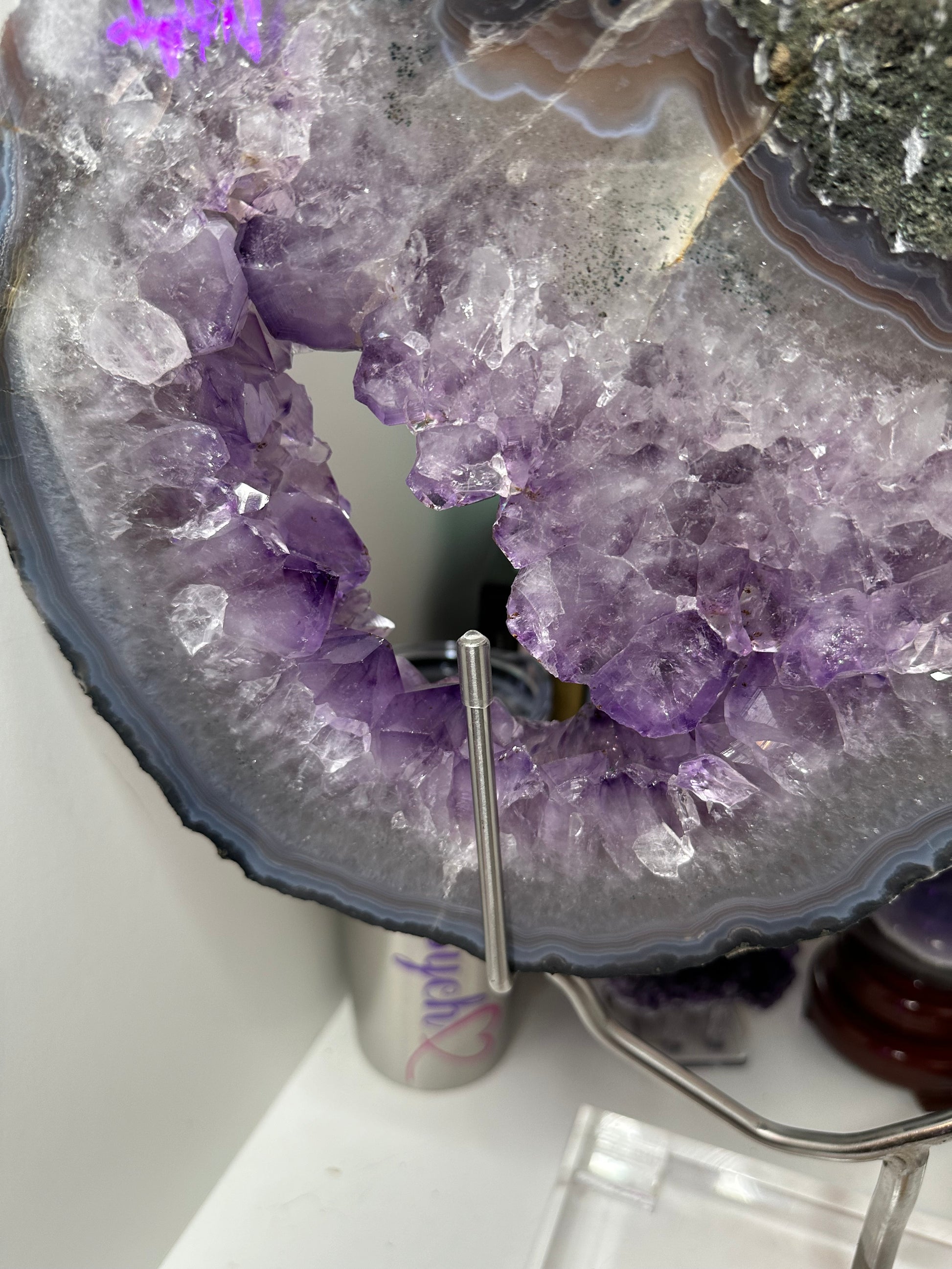 Gorgeous sculpture piece! The amethyst, basalt, quartz, and agate portal cross section is even more spectacular in person!! This beauty comes with a custom/designed acrylic and metal stand! 🌹🌹