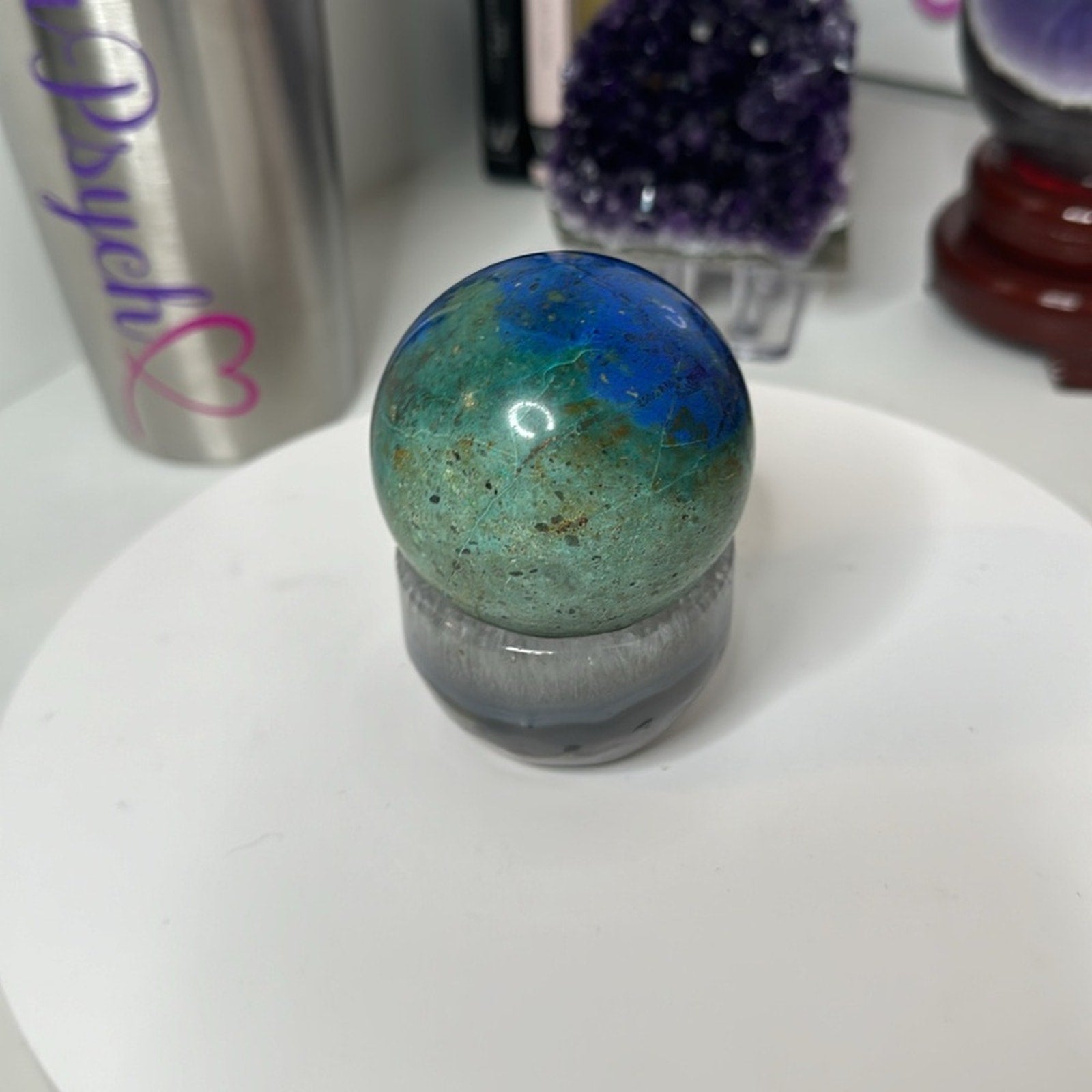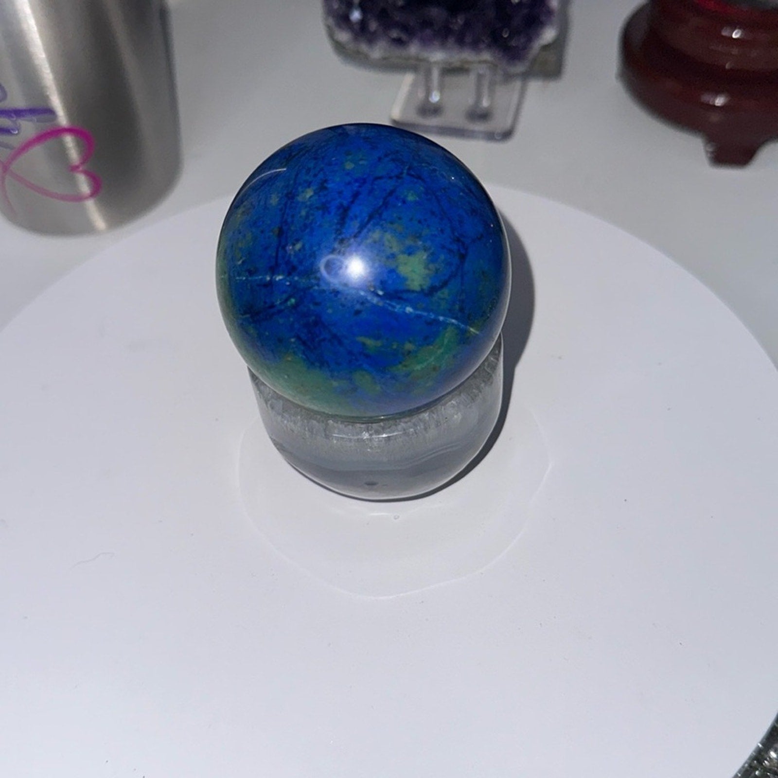 Beautiful Azurite sphere with glimpses of malachite. Looks like the Earth 🌍!