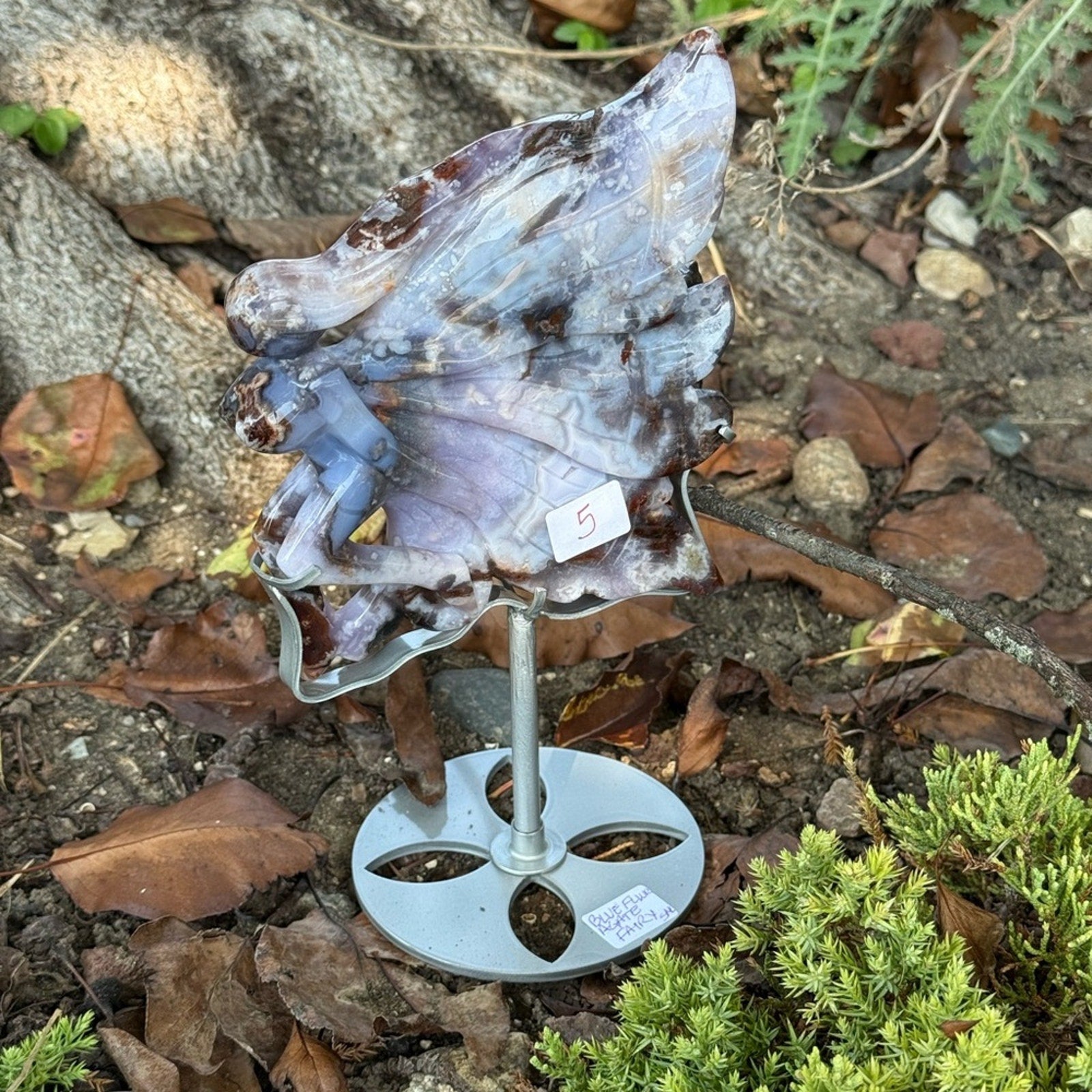 Blue Flower Agate Fairy and Custom Stand - BLUEFLWRAGTFRY-001