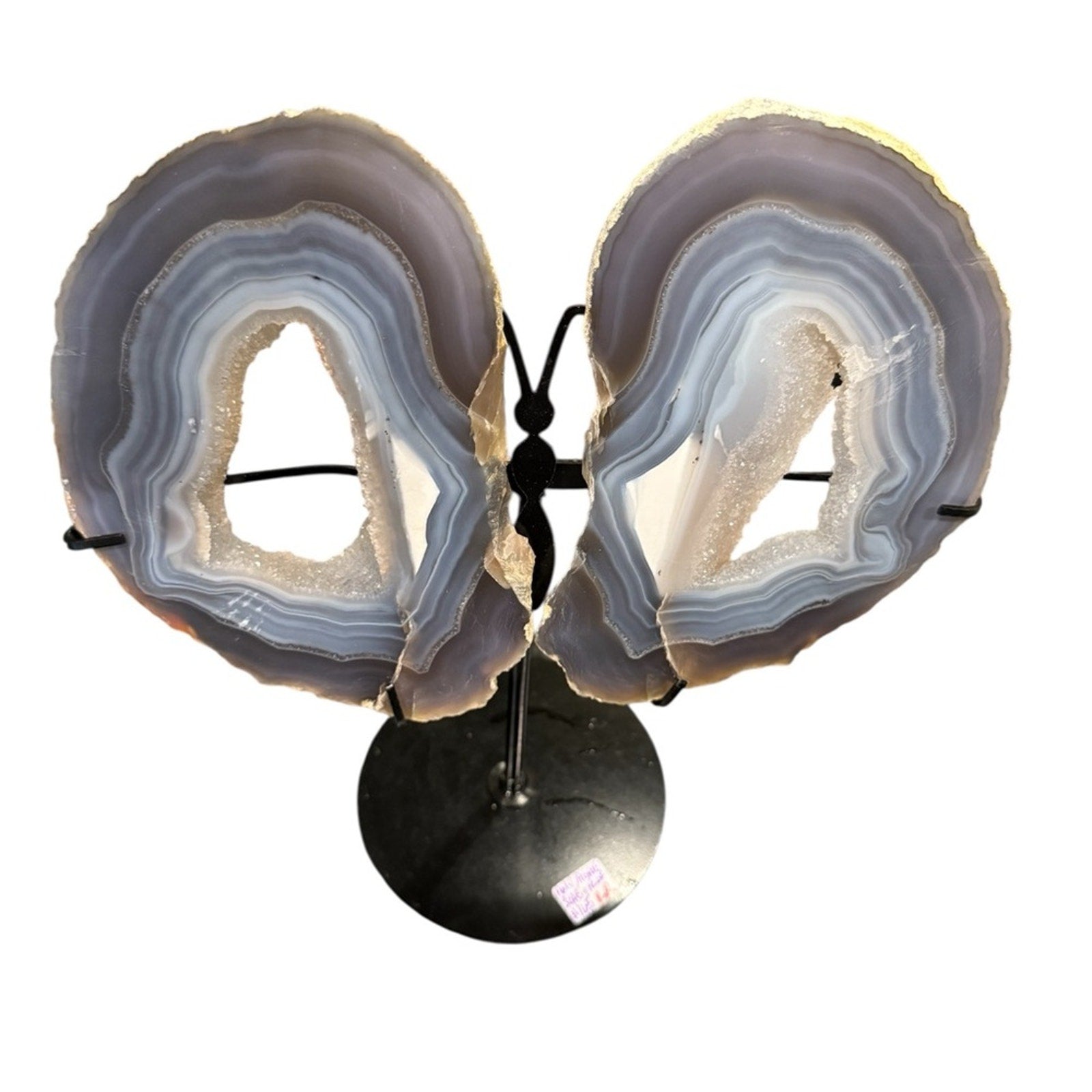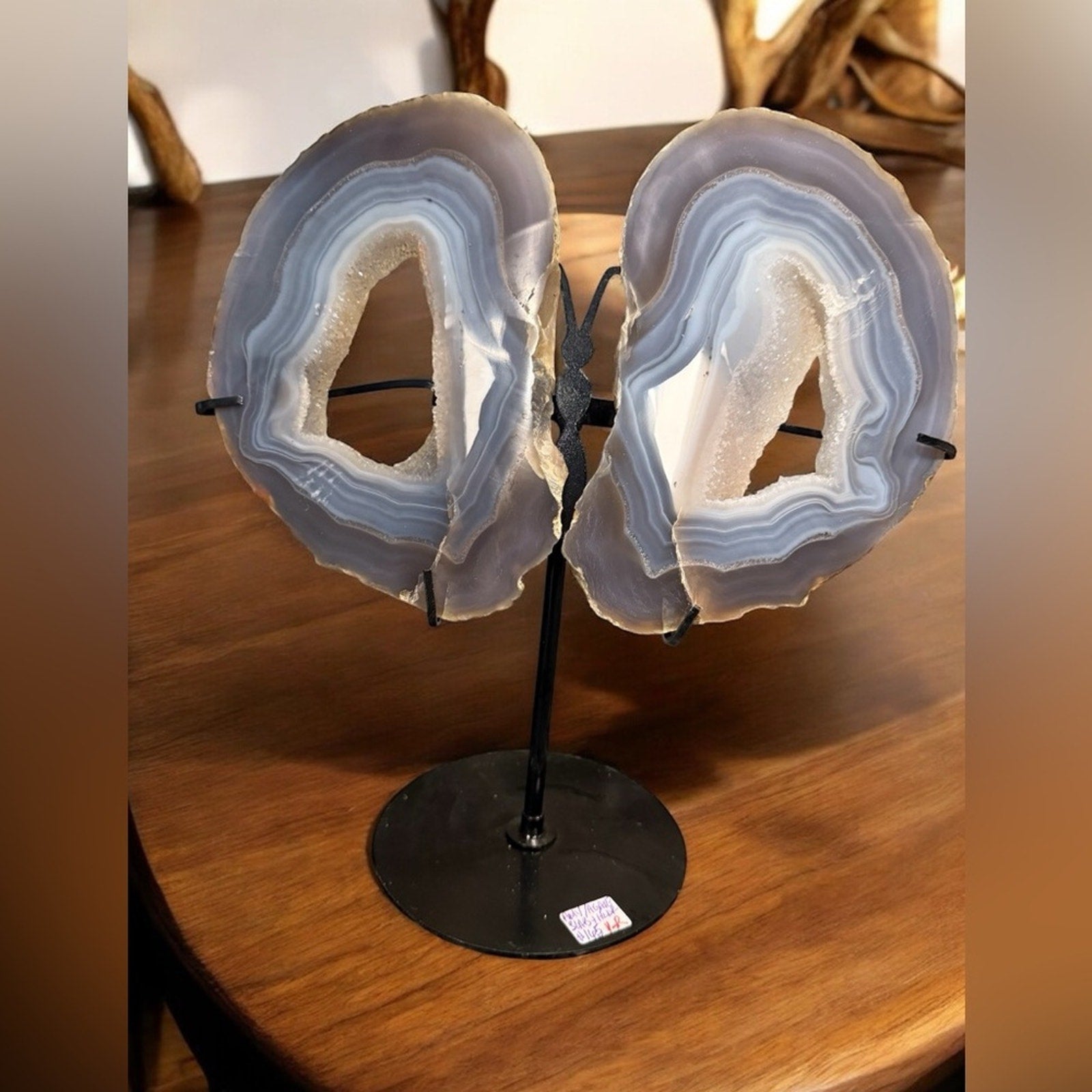 Gorgeous sculpture piece! The quartz and agate butterfly geode cross section is even more spectacular in person!! 🌹🌹