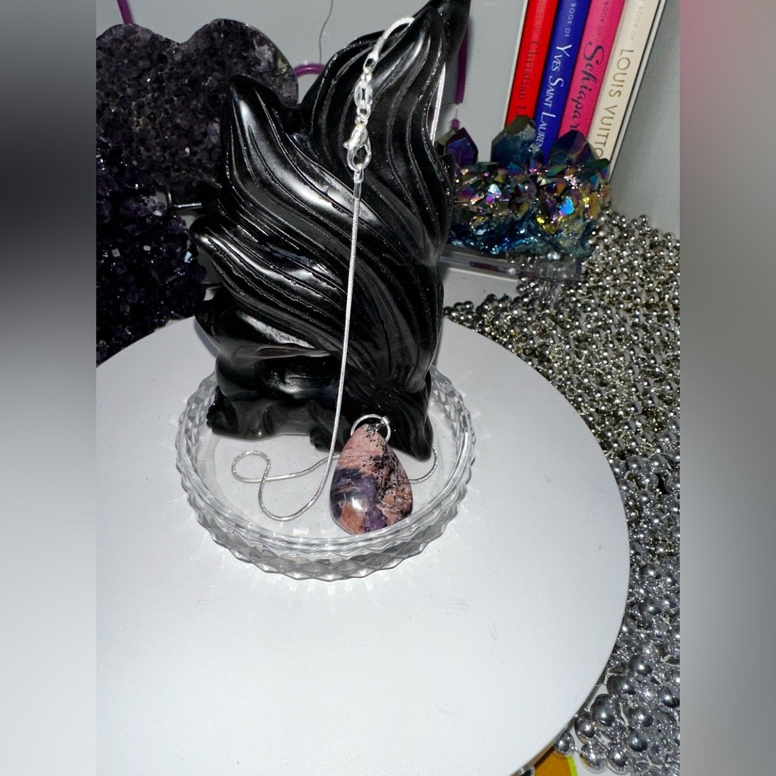 Color rendering will vary based on monitor display. Pictures taken without flash and using a ring light. Will receive pictured necklace.
