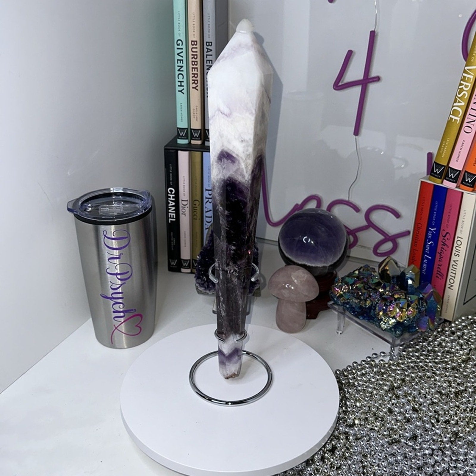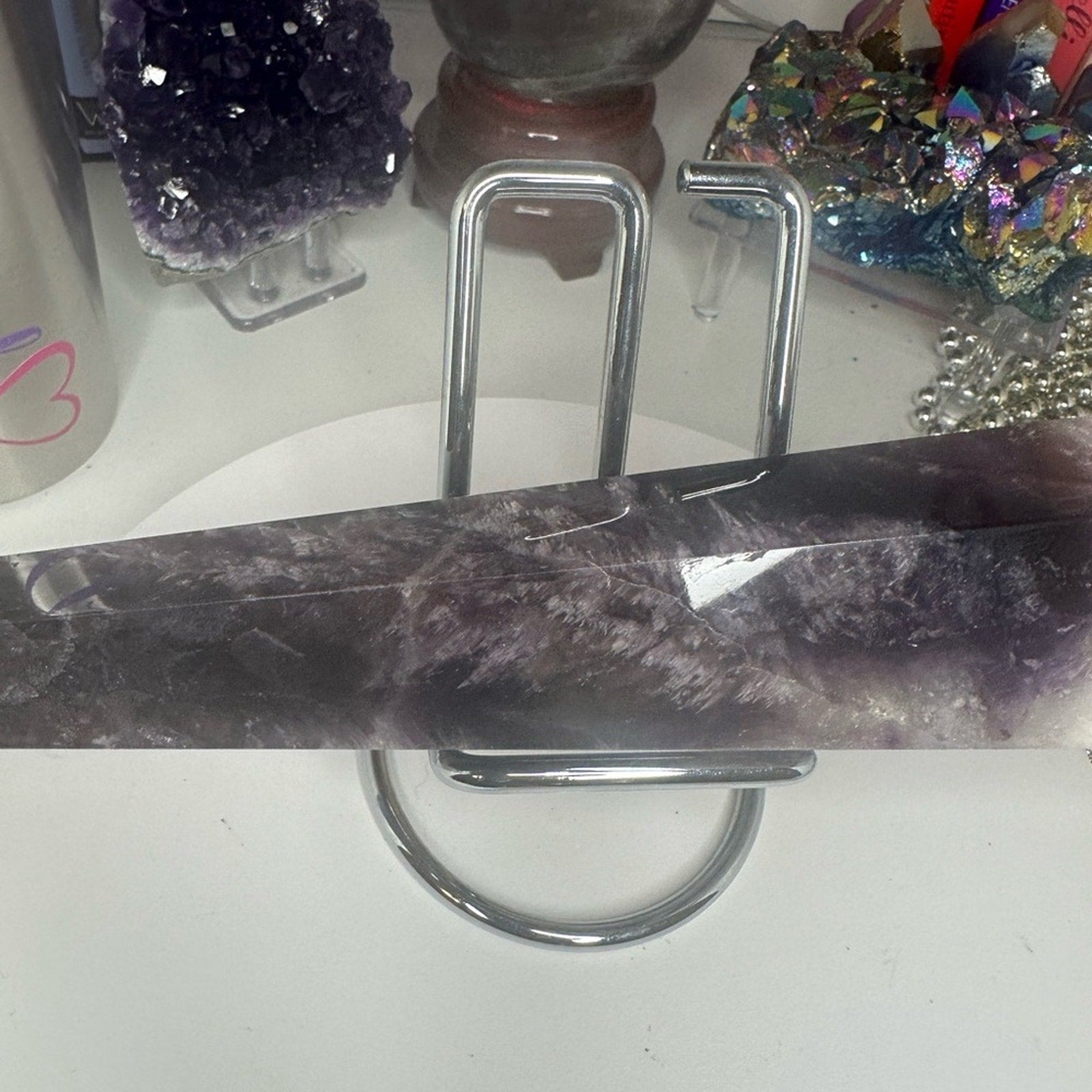 Beautiful Dream Amethyst wand with feathering dimension. I have smaller sizes in my closet as well.