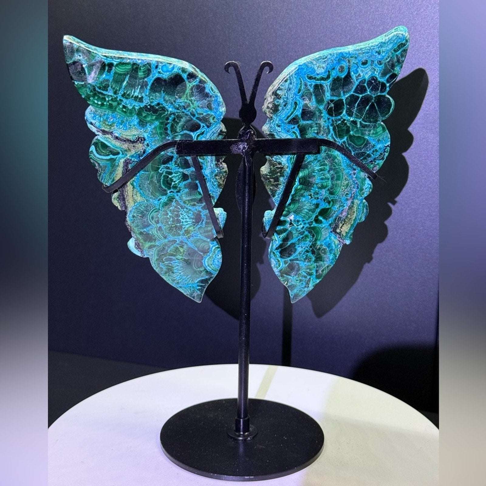 I specifically selected this piece of raw Chrysocolla and Malachite and had the pleasure of working with a Master artisan to craft the stone into this beautiful butterfly piece!🌹🌹