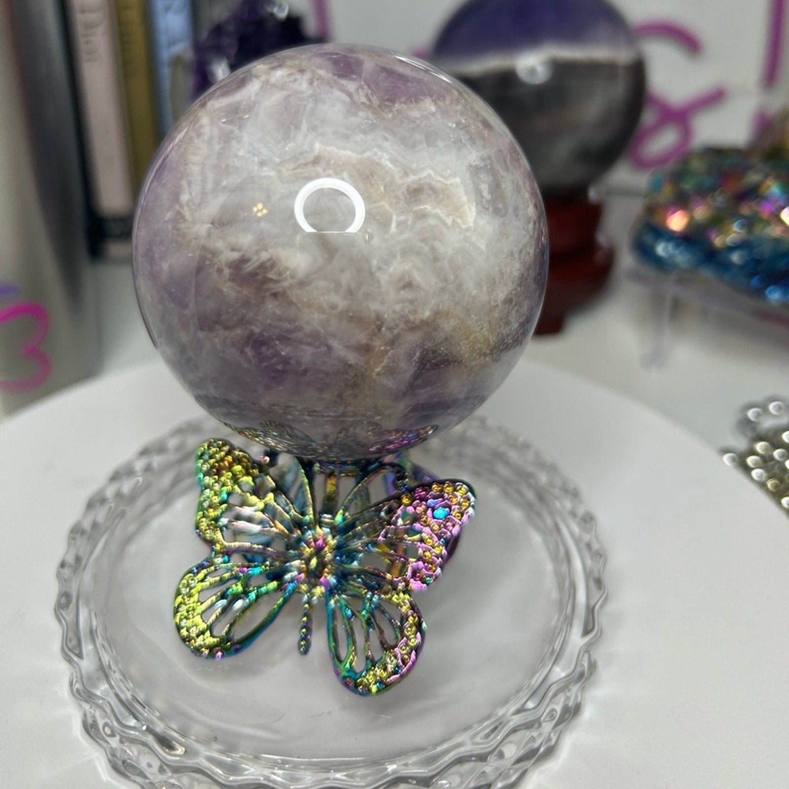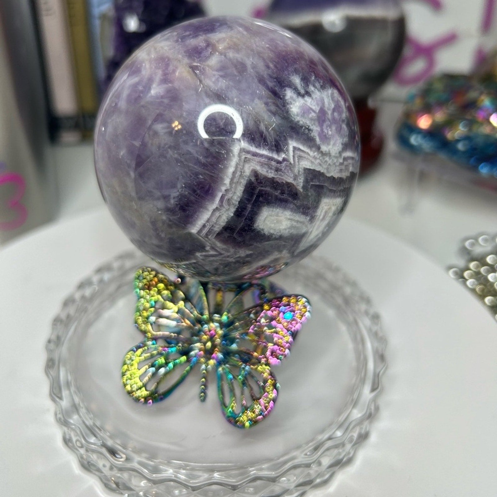 Dream Chevron Amethyst Sphere 71MM CHAMYSPH-001