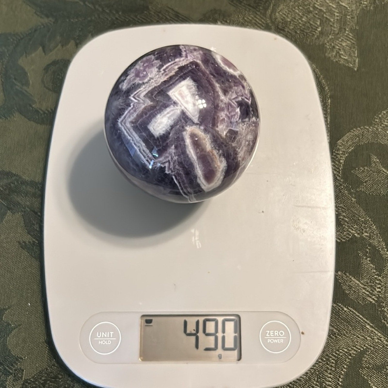 Beautiful Chevron Amethyst sphere! Beyond gorgeous! The levels of chevron lines draws your eyes up to the Amethyst center goodness! Top design looks like an arrow or mushroom cutie! 🌹🌹
