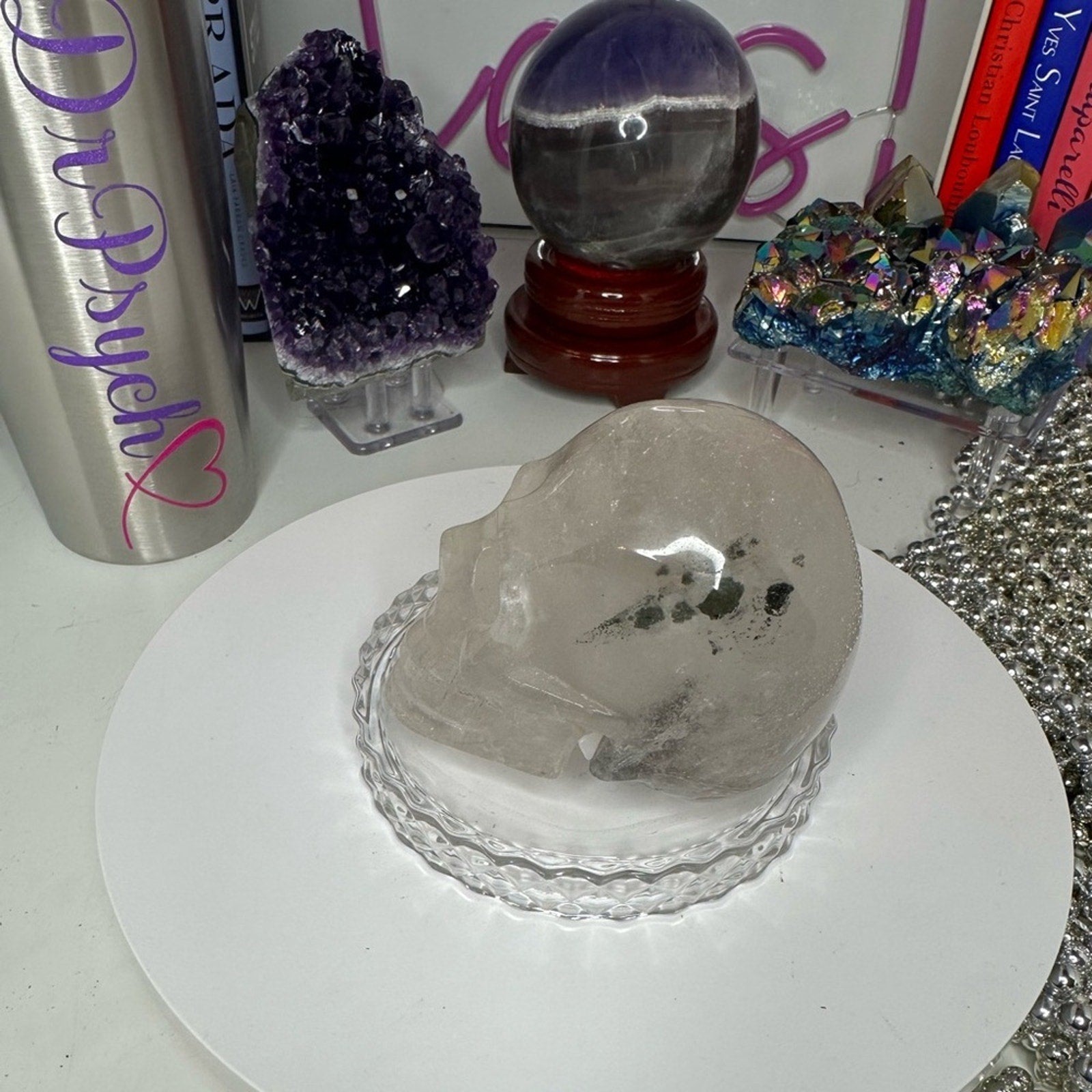 Beautiful Garden Quartz and flower agate skulls.