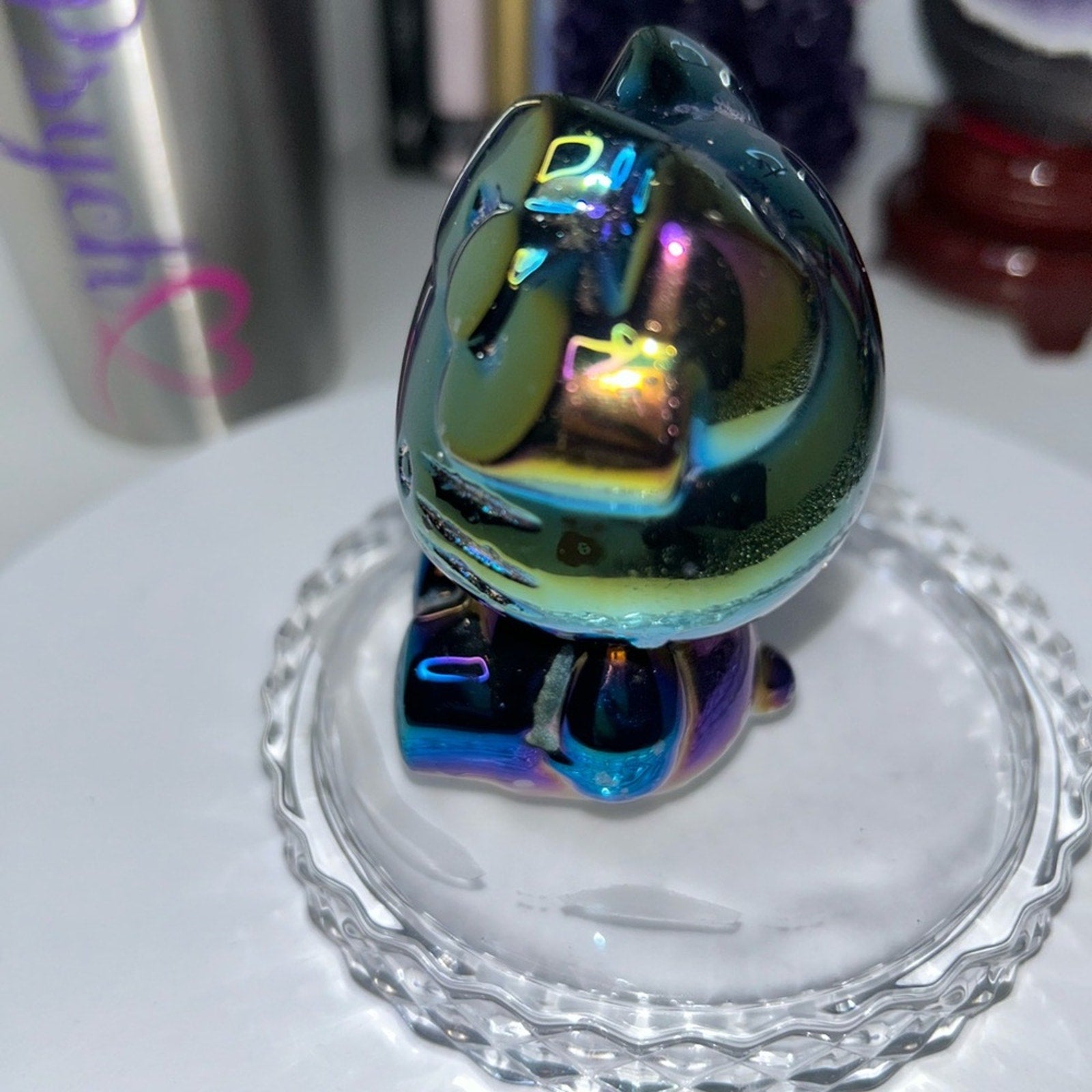 Beautiful Hello Kitty Aura Black Obsidian carving.