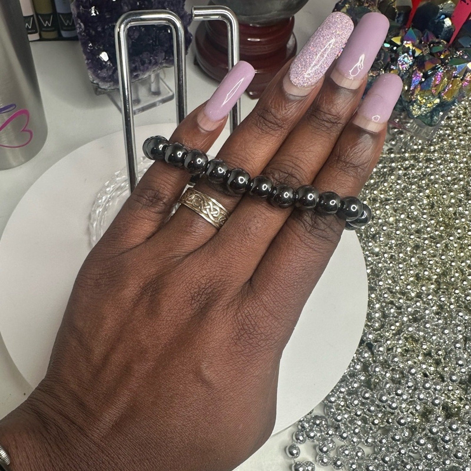 Beautiful gunmetal gray shiny bracelet with 8MM beads. Itโs ready to wear. ๐น๐น