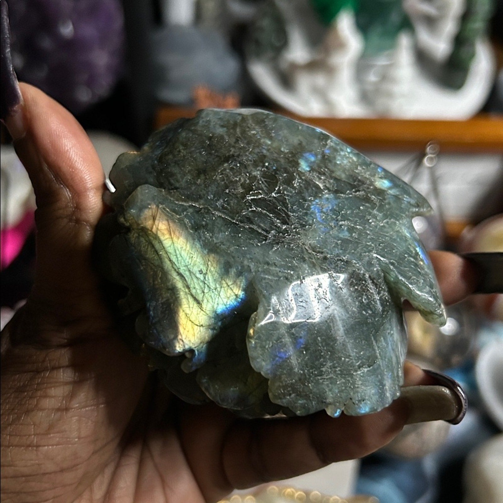 Labradorite Lotus Flower and stand Large