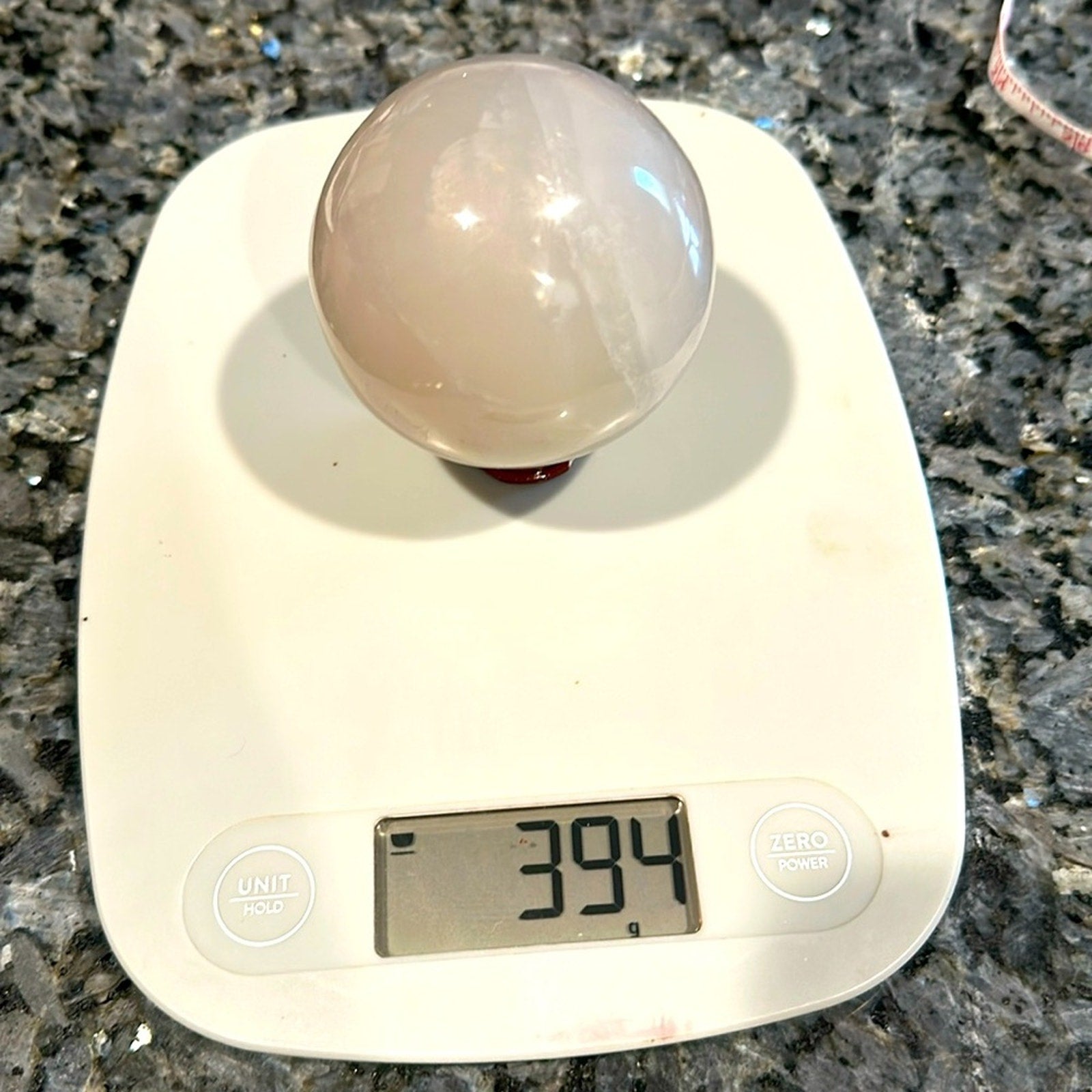 Beautiful pale lavender quartz sphere. 394 g and approximately 66.33 MM diameter.