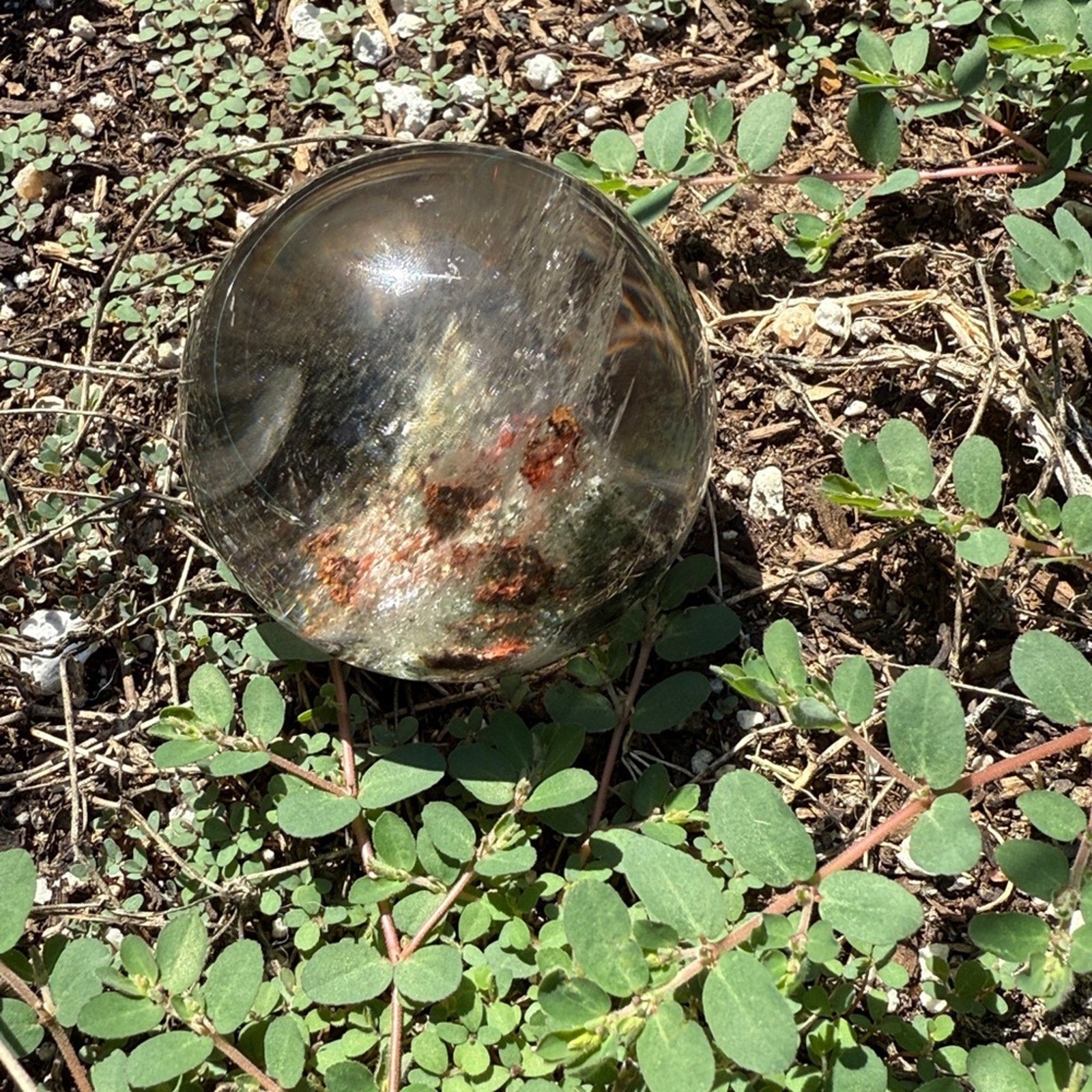 Beautiful and super clear Lodolite Garden Quartz crystal sphere. Perfect for decor or meditation. 🌹🌹