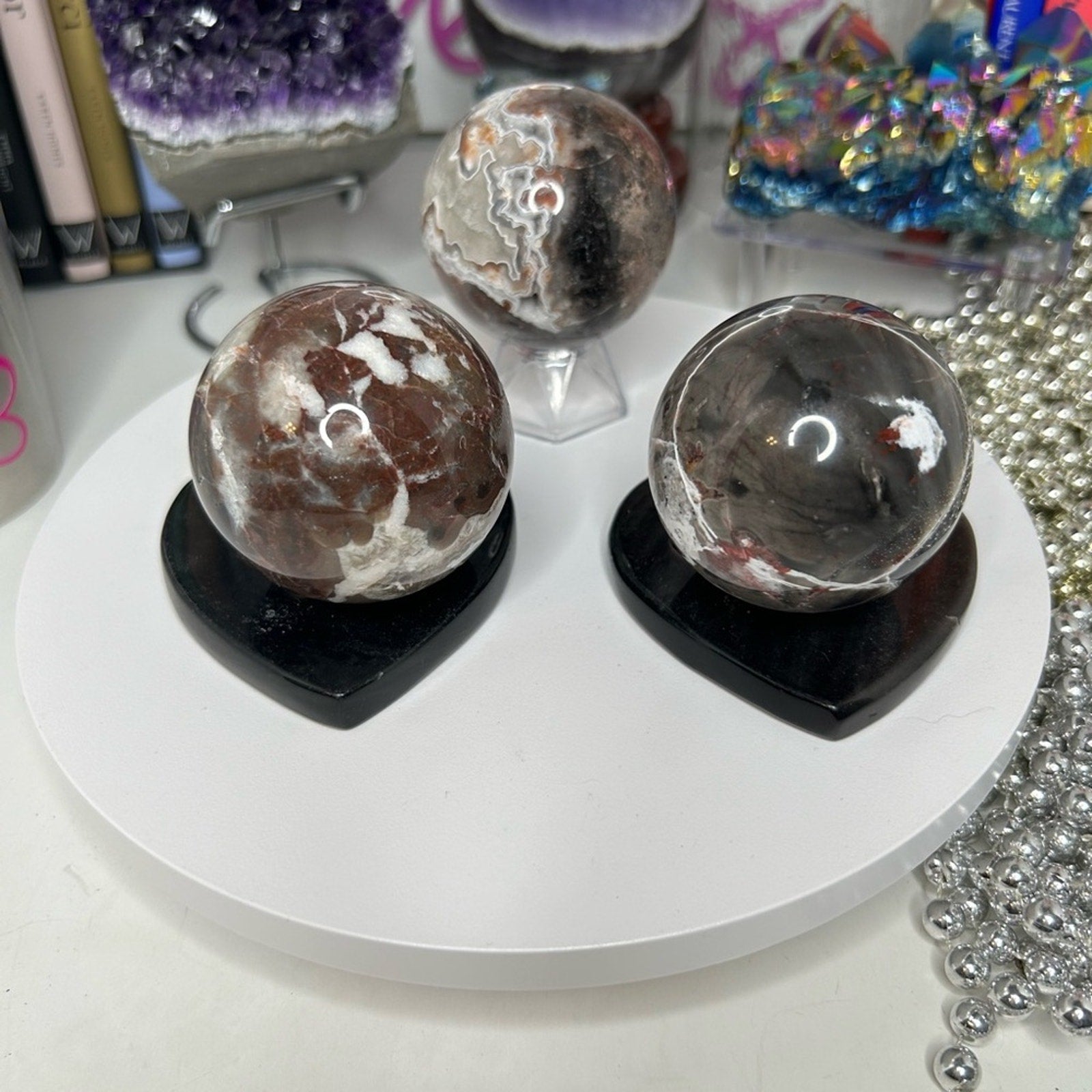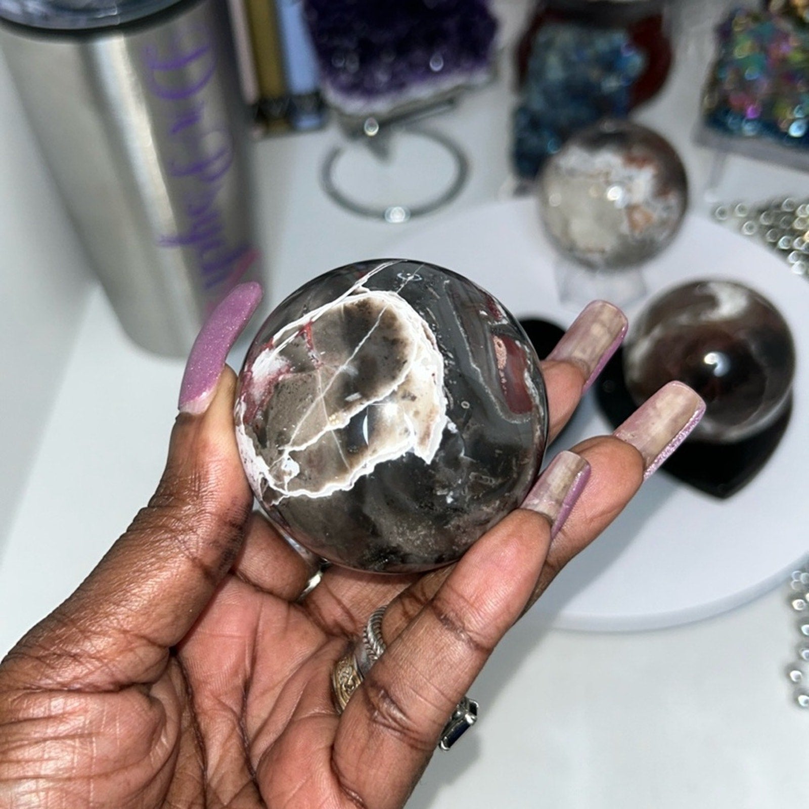 Beautiful Mexican Lace Agate and Brecciated Jasper sphere! Beyond gorgeous! The levels of agate lines and swirls keeps you mesmerized during times of needed concentration! 🌹🌹