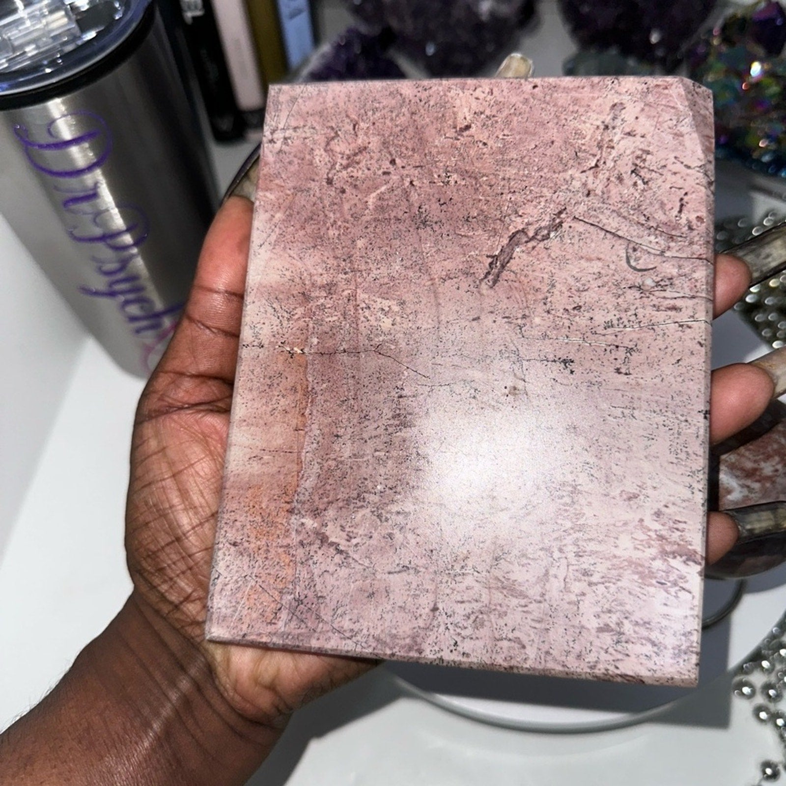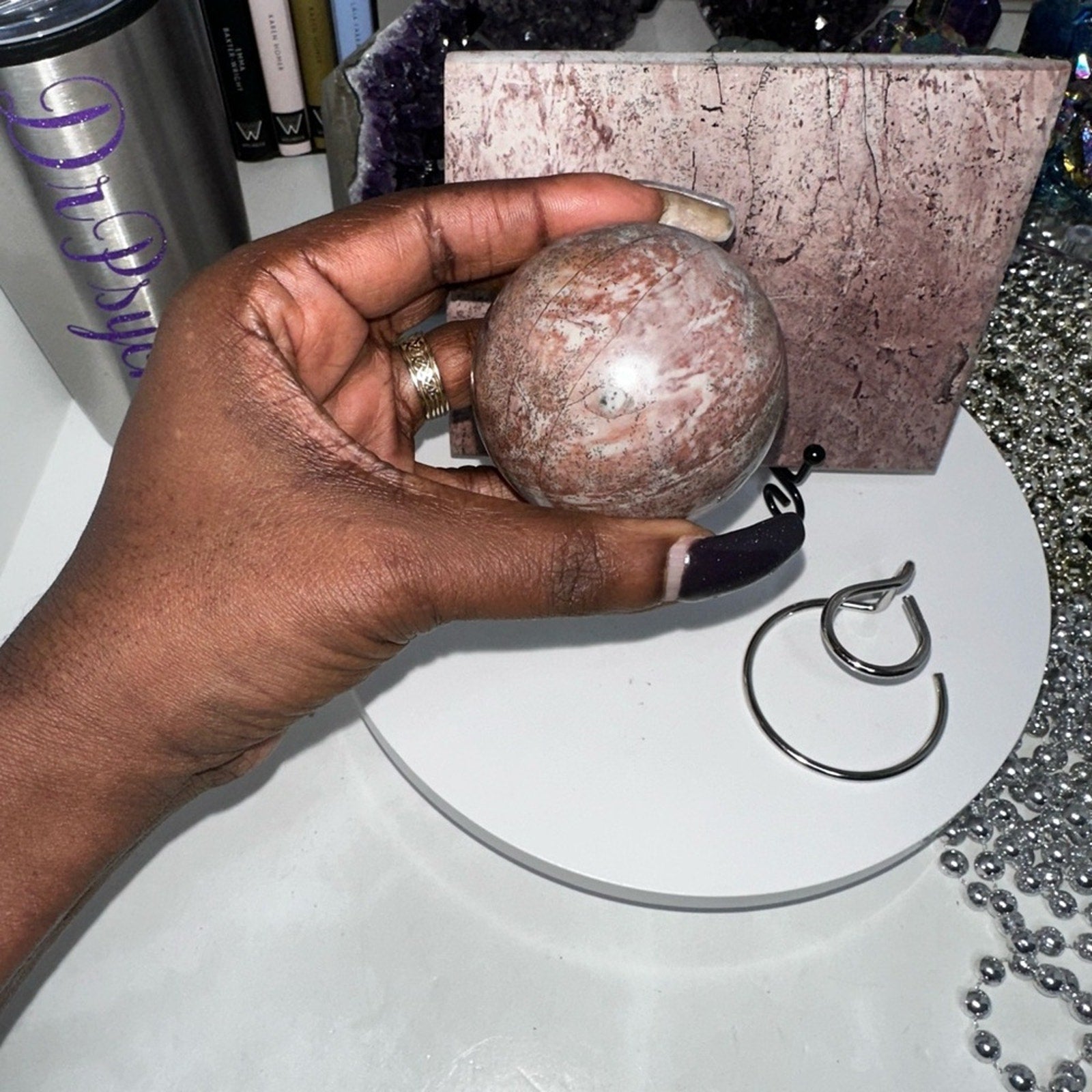 Beautiful Pink Picture Jasper and coordinating sphere cross section looks like a Japanese painting. The dendritic pattern is AMAZING! Absolutely beautiful slab that you will cherish forever. 🌹🌹